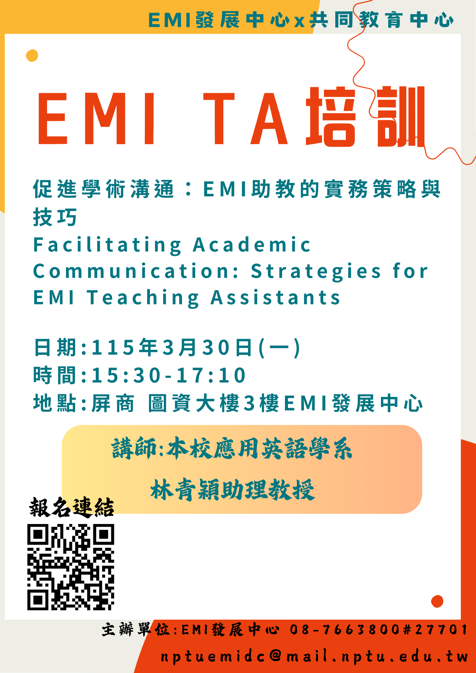 【公告】114-2 EMI TA培訓講座 歡迎同學們踴躍報名參加~